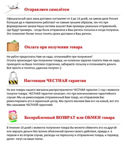 Тогда специально для Вас мы разработали программу беспроблемного возврата товара, т.е в течение 14 дней Вы можете обменять или вернуть непонравившийся товар без объяснения причин своих действий.