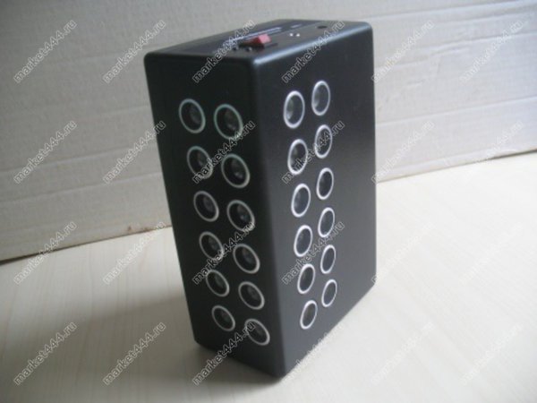 Охватывает сигналом 2 плоскости — помеха для звукозаписывающих устройств излучается одновременно по горизонтали и по вертикали. Это возможно благодаря тому, что излучатели помехи располагаются на двух панелях корпуса устройства (по 12 штук на каждой). В каком бы положении ни был установлен прибор, одна из панелей будет направлена к потолку, другая — к стене.